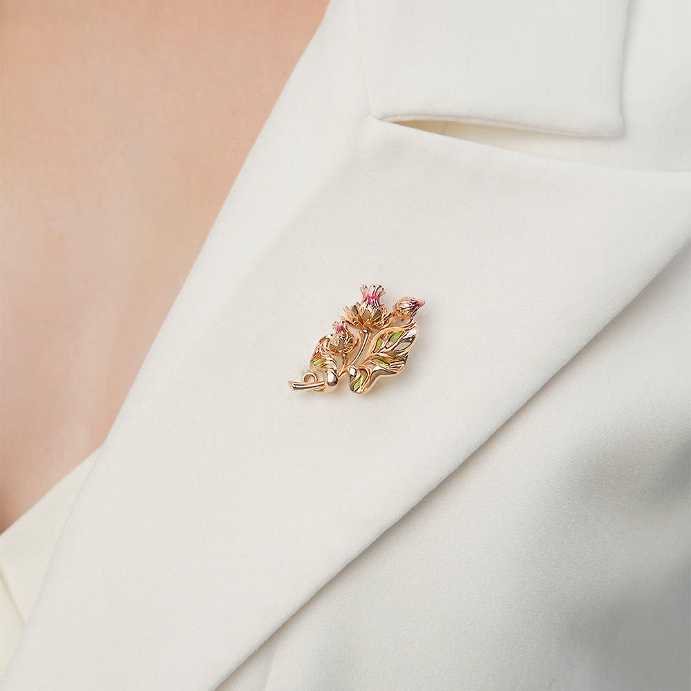 Брошь «Чертополох» из красного золота с эмалью купить в онлайн магазине GPGOLD.MD