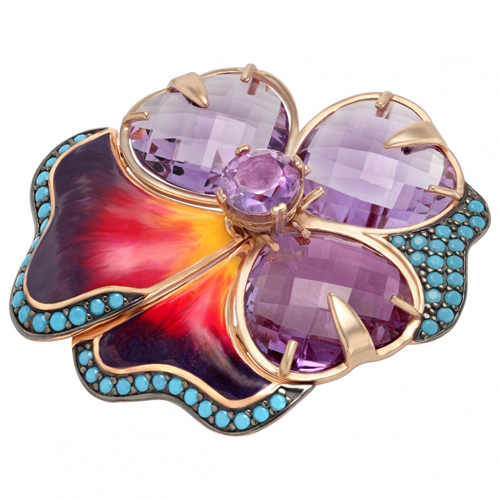 Золотая брошь с фианитами и эмалью. Артикул 670060Е купить в онлайн магазине GPGOLD.MD
