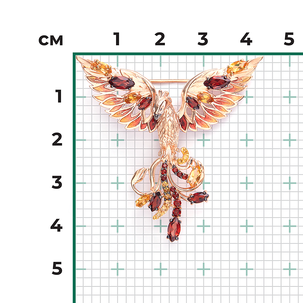 Брошь «Феникс» из красного золота с гранатами, цитринами и эмалью купить в онлайн магазине GPGOLD.MD