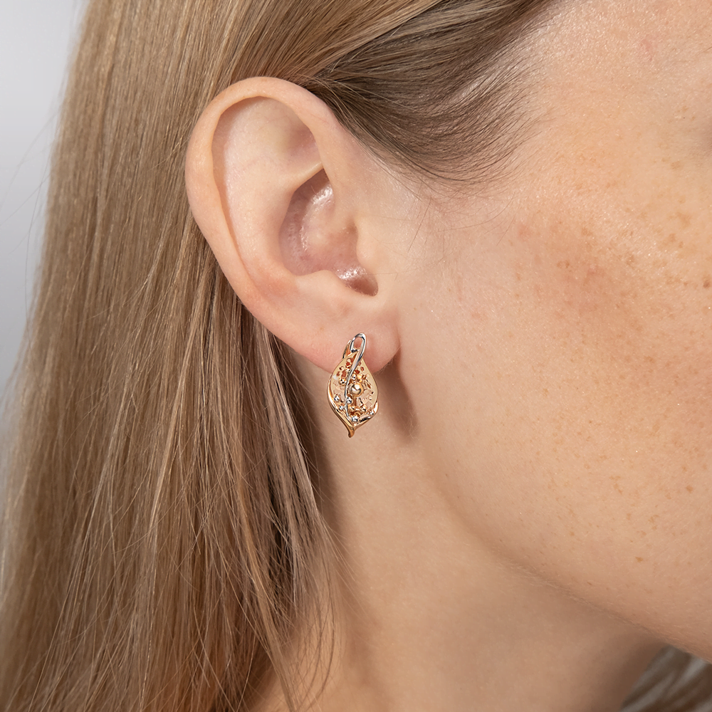 Серьги «Листья в росе» с английским замком из красного золота купить в онлайн магазине GPGOLD.MD
