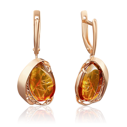 Серьги с английским замком из красного золота с янтарём купить в онлайн магазине GPGOLD.MD