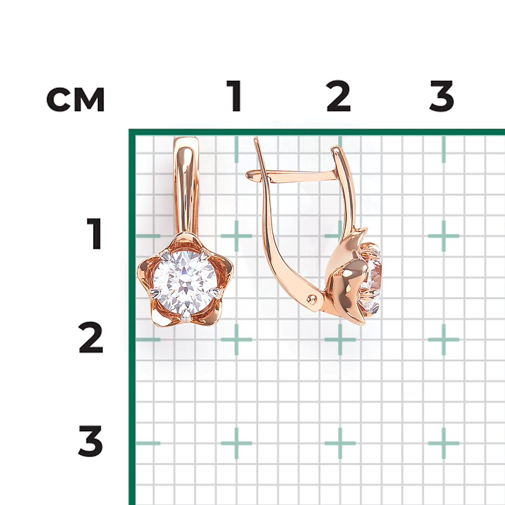 Серьги с английским замком из красного золота с фианитом купить в онлайн магазине GPGOLD.MD