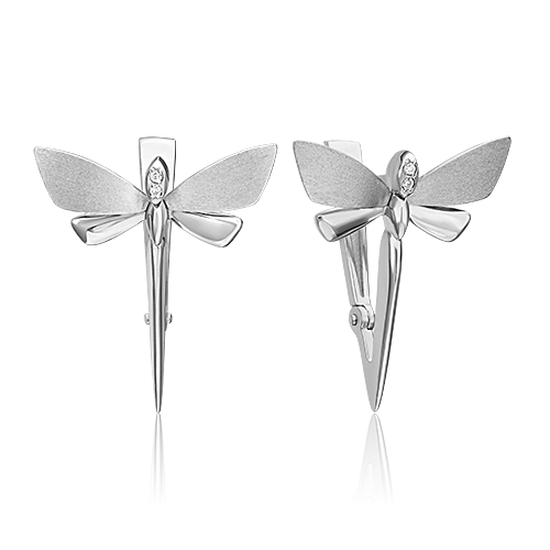 Серьги «Стрекозы. Ценность настоящего» с английским замком из белого золота с бриллиантами купить в онлайн магазине GPGOLD.MD