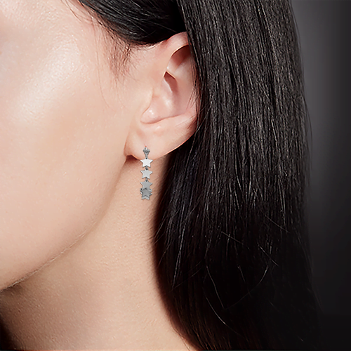 Серьги «Звёзды» с турецким замком из белого золота купить в онлайн магазине GPGOLD.MD