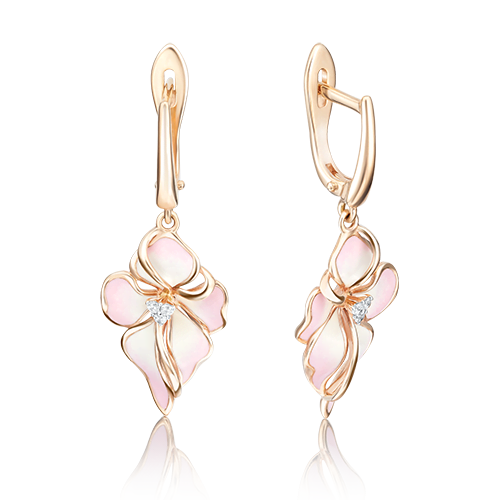 Серьги «Ирисы» с английским замком из красного золота с фианитами и эмалью купить в онлайн магазине GPGOLD.MD