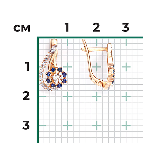 Серьги с английским замком из красного золота с бриллиантами и сапфирами купить в онлайн магазине GPGOLD.MD