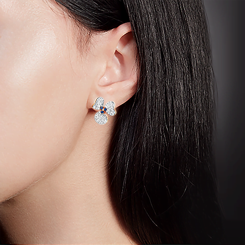 Серьги с английским замком из красного золота с сапфирами и бриллиантами купить в онлайн магазине GPGOLD.MD