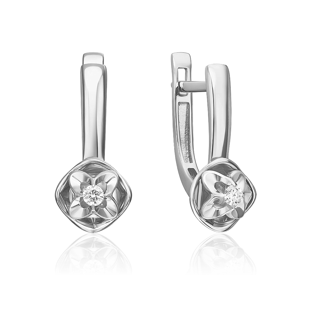 Серьги с английским замком из белого золота с бриллиантом