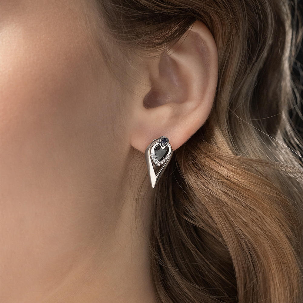 Серьги с английским замком из белого золота с сапфирами и бриллиантами купить в онлайн магазине GPGOLD.MD