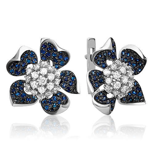 Серьги «Пионы» с английским замком из белого золота с бриллиантами и сапфирами купить в онлайн магазине GPGOLD.MD