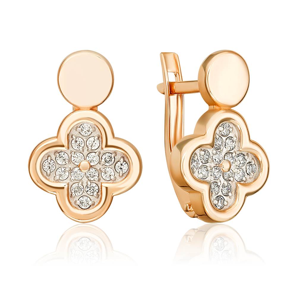 Серьги с английским замком из красного золота с фианитами купить в онлайн магазине GPGOLD.MD