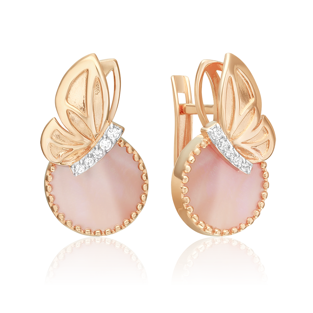 Серьги «Утренняя симфония» с английским замком из красного золота с перламутром и фианитами купить в онлайн магазине GPGOLD.MD