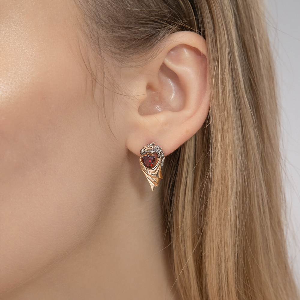 Серьги «Секрет успеха» с английским замком из красного золота с гранатом купить в онлайн магазине GPGOLD.MD
