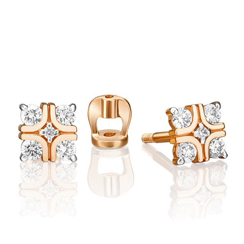 Серьги-пусеты из красного золота с бриллиантами купить в онлайн магазине GPGOLD.MD