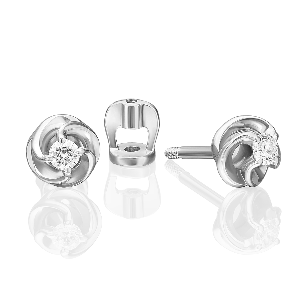 Серьги-пусеты из белого золота с бриллиантом купить в онлайн магазине GPGOLD.MD