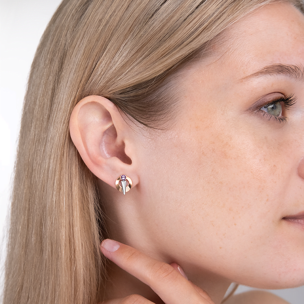 Серьги-пусеты из красного золота с аметистом купить в онлайн магазине GPGOLD.MD