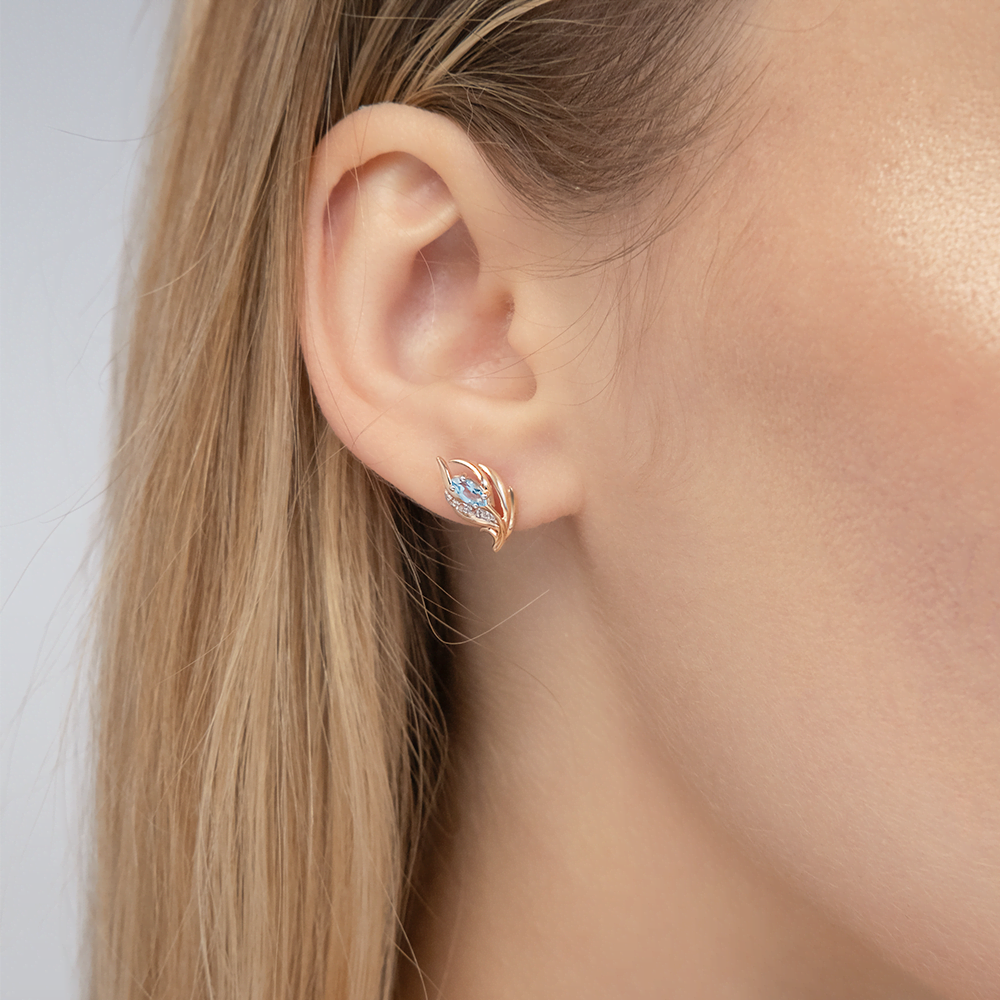 Серьги-пусеты «Секрет счастья» из красного золота с топазом и натуральными топазами white купить в онлайн магазине GPGOLD.MD