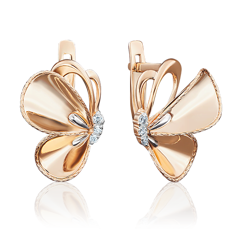 Серьги «Мотыльки» с английским замком из красного золота с фианитами купить в онлайн магазине GPGOLD.MD