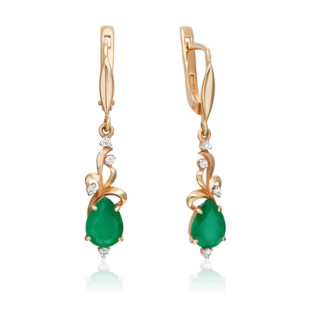 Серьги с английским замком из красного золота с халцедоном и фианитами купить в онлайн магазине GPGOLD.MD
