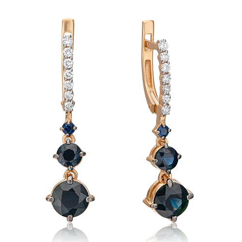 Серьги с английским замком из красного золота с сапфирами и бриллиантами