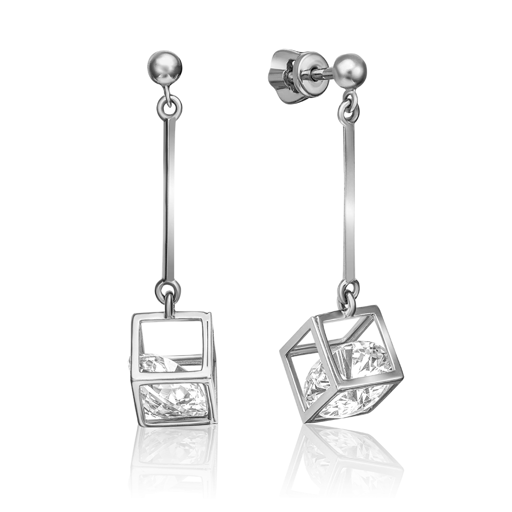 Серьги-пусеты из белого золота с фианитом купить в онлайн магазине GPGOLD.MD