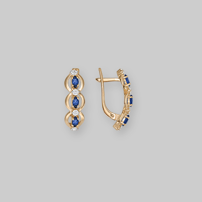 Серьги с английским замком из красного золота с сапфирами и бриллиантами купить в онлайн магазине GPGOLD.MD