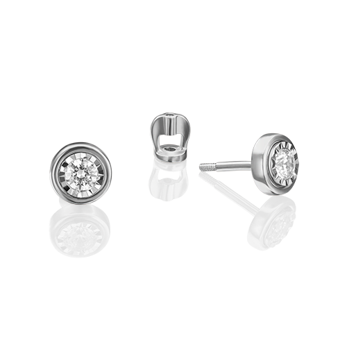 Серьги-пусеты из белого золота с бриллиантом купить в онлайн магазине GPGOLD.MD