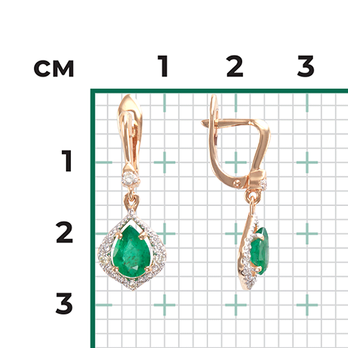 Серьги с английским замком из красного золота с изумрудом и бриллиантами купить в онлайн магазине GPGOLD.MD