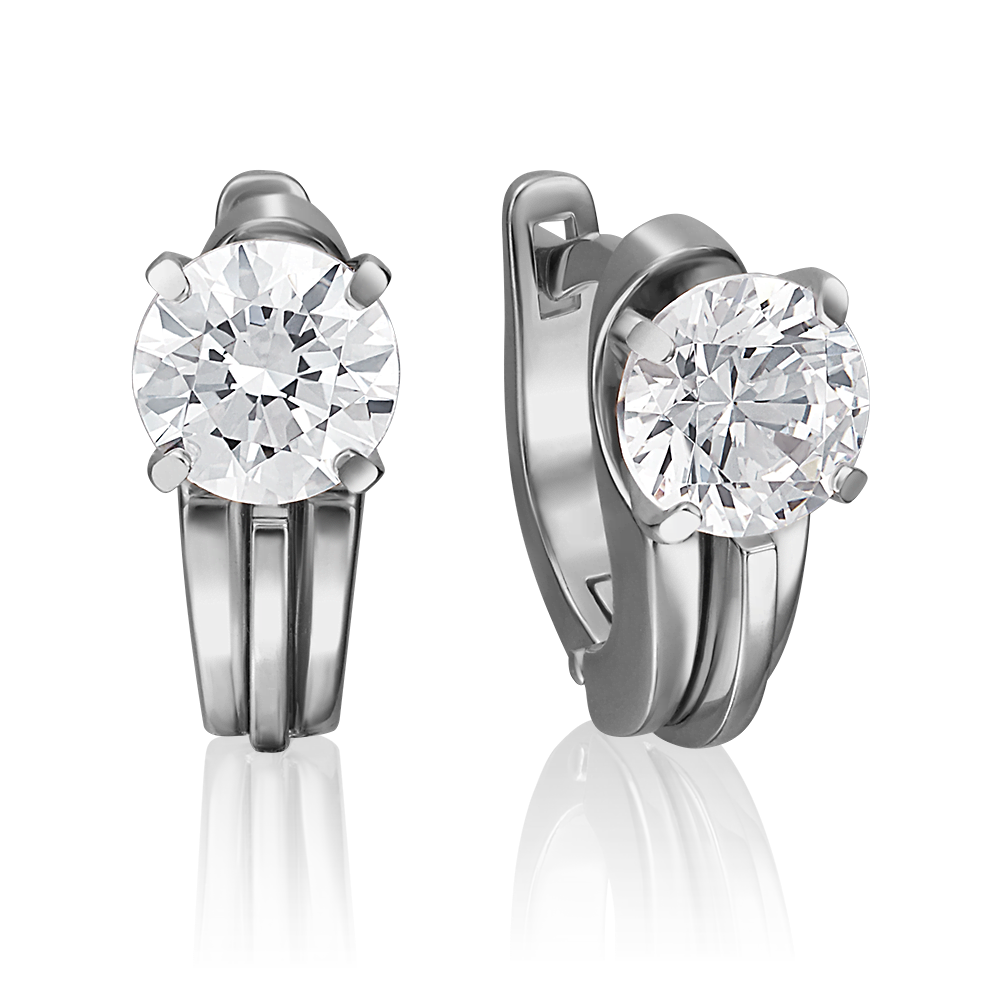 Серьги с английским замком из белого золота с фианитом купить в онлайн магазине GPGOLD.MD