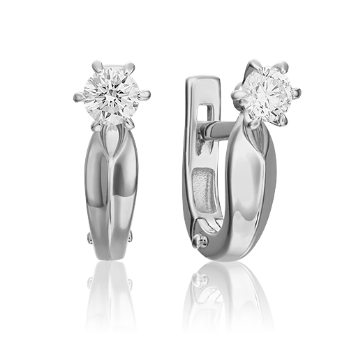 Серьги с английским замком из белого золота с бриллиантом купить в онлайн магазине GPGOLD.MD