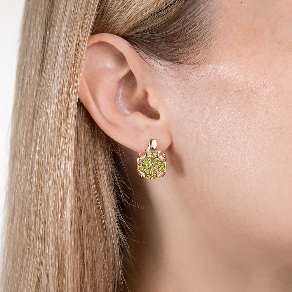 Серьги с английским замком из красного золота с хризолитами купить в онлайн магазине GPGOLD.MD