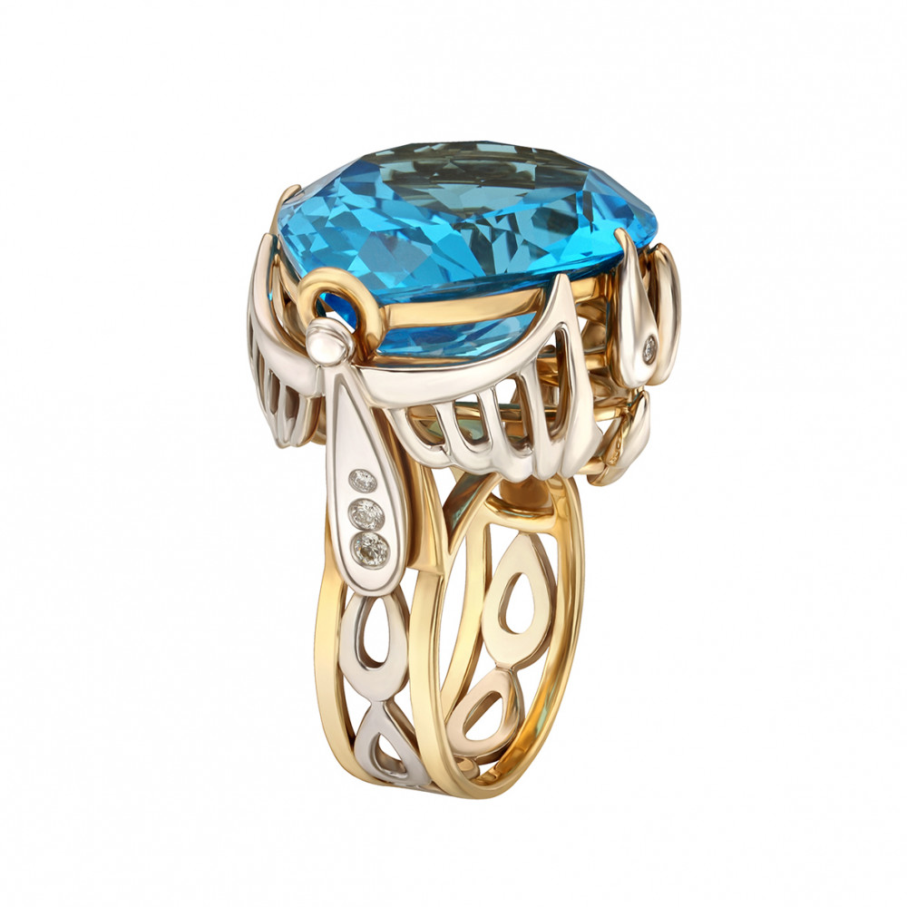 Золотое кольцо с бриллиантами и голубым топазом. Артикул 753162 купить в онлайн магазине GPGOLD.MD