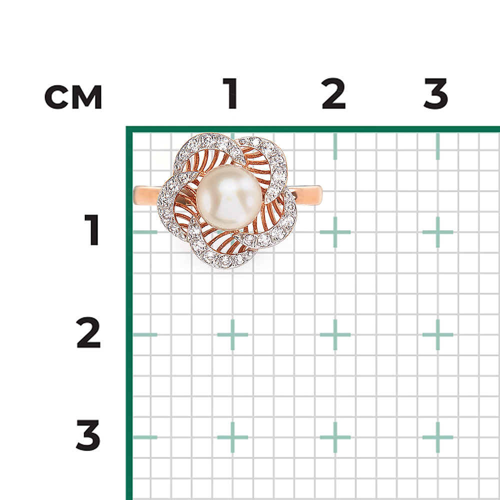 Кольцо из красного золота с жемчугом культивированным и фианитами купить в онлайн магазине GPGOLD.MD