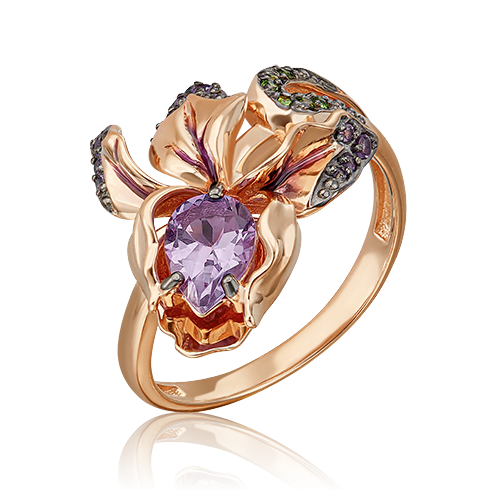 Кольцо «Ирис» из красного золота с аметистами, хромдиопсидами и эмалью купить в онлайн магазине GPGOLD.MD