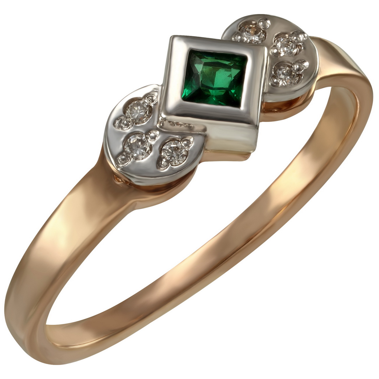 Золотое кольцо с бриллиантами и изумрудами. Артикул 752645 купить в онлайн магазине GPGOLD.MD