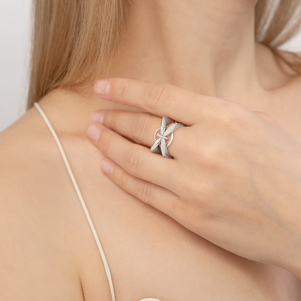 Кольцо «Стрекоза. Ценность настоящего» из белого золота с бриллиантами