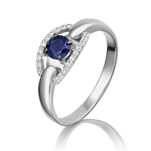 Кольцо из белого золота с сапфиром и бриллиантами купить в онлайн магазине GPGOLD.MD