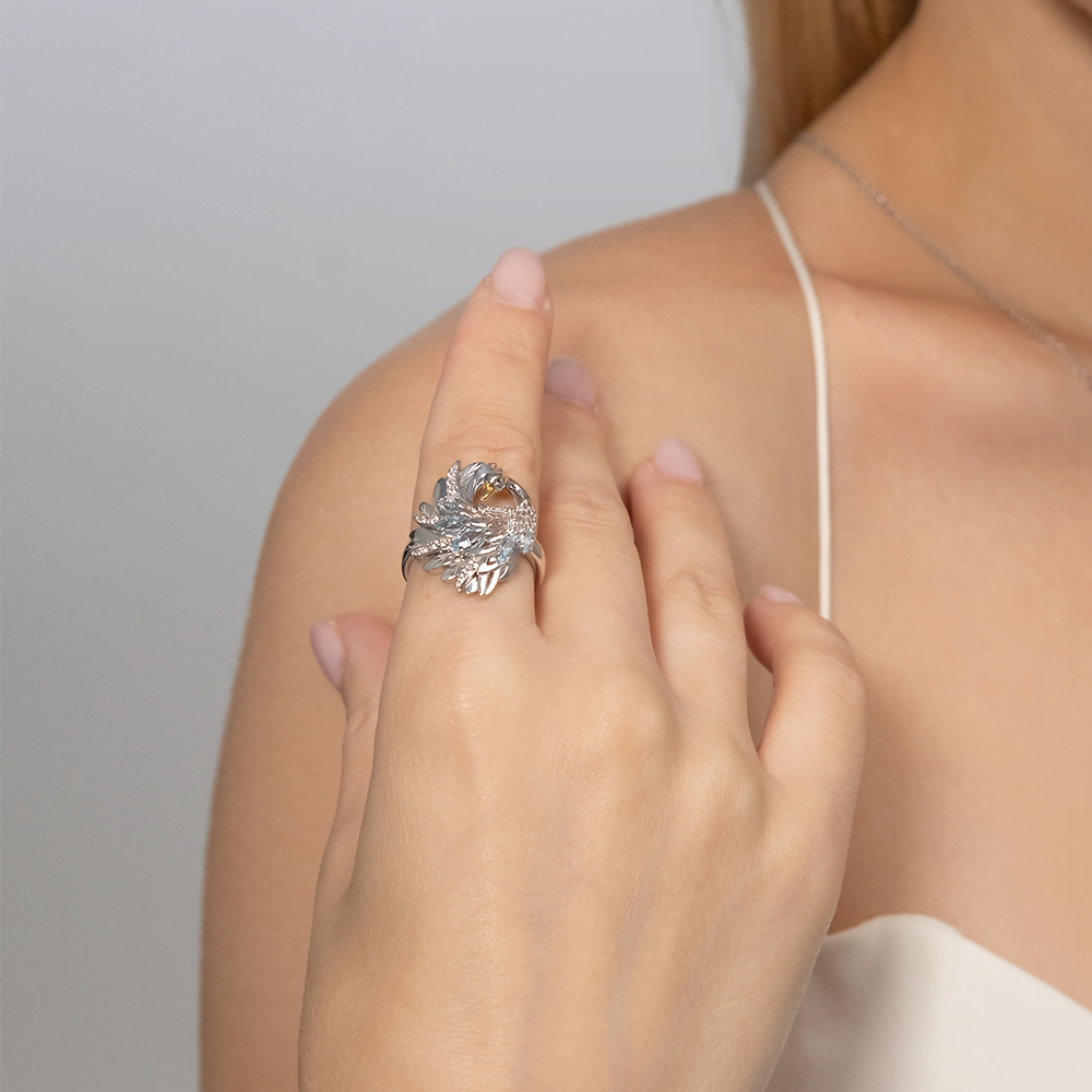 Кольцо «Лебедь» из белого золота с топазами и натуральными топазами white купить в онлайн магазине GPGOLD.MD