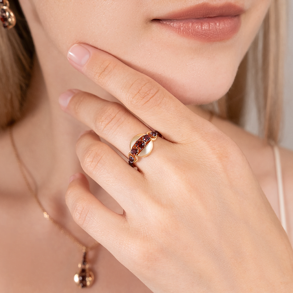 Кольцо из красного золота с гранатами