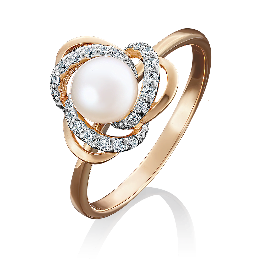 Кольцо из красного золота с жемчугом культивированным и фианитами купить в онлайн магазине GPGOLD.MD