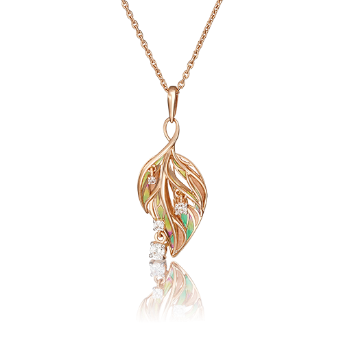 Подвеска «Лист» из красного золота с фианитами и эмалью