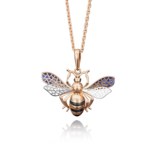 Подвеска «Оса» из красного золота с фианитами и эмалью
