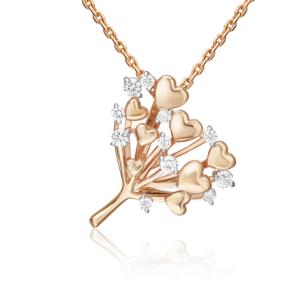 Подвеска «Букет сердец» из красного золота с фианитами купить в онлайн магазине GPGOLD.MD