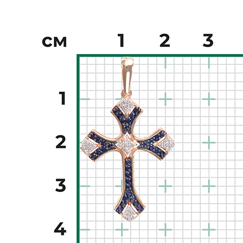 Декоративный крест из красного золота с сапфирами и бриллиантами купить в онлайн магазине GPGOLD.MD